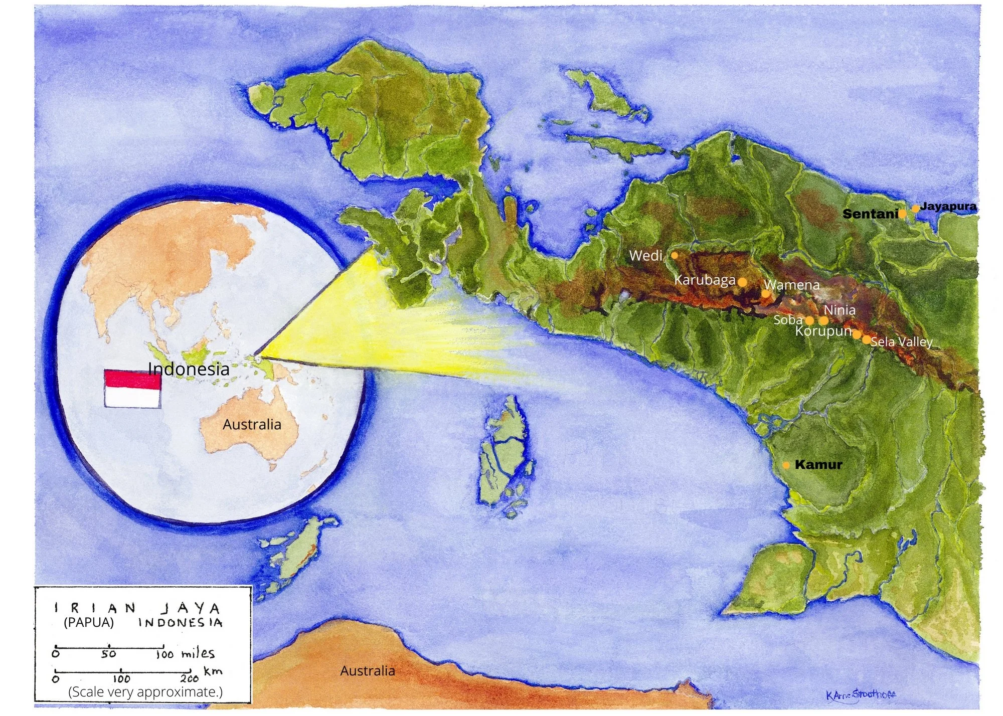 I served on the Indonesian half of the island of New Guinea; the eastern half (NOT the independent western half, the nation of Papua New Guinea). I worked at about 6000 feet elevation in the rugged Eastern Highlands of Papua, Indonesia, among the tribe who lives there, the highly intelligent, fiery, assertive Kimyal tribe.